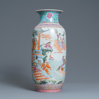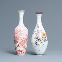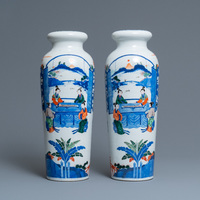 Une paire de vases de forme rouleau en porcelaine de Chine wucai, 19ème