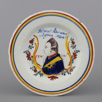 Plat orangiste en faïence de Delft, décor double portrait royal, 18e