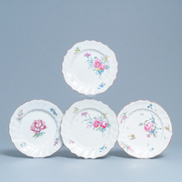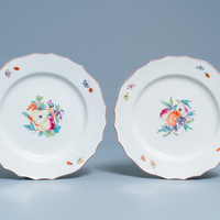 Deux assiettes en porcelaine polychrome de Tournai à décor de fruits, 18ème