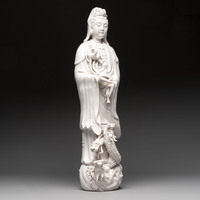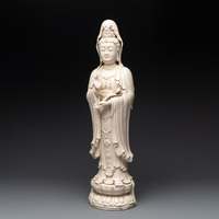 A large Chinese Dehua blanc de Chine standing Guanyin, 20th C.