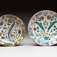 Two Iznik 'saz leaf' pottery dishes, Turkey, 16th C.