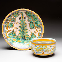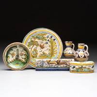 Six polychrome Spanish pottery wares, Talavera, 18th C.