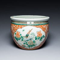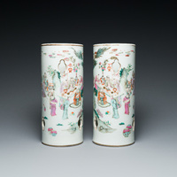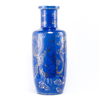 Vase de forme rouleau en porcelaine de Chine à décor doré d'un dragon et d'un phénix sur fond bleu poudré, 19ème