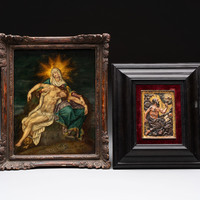 European school: 'Pieta', oil on copper, and a polychromed bronze relief of St. Marc, 16/17th C.