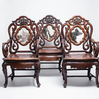 A set of four Chinese or Vietnamese mother-of-pearl-inlaid hongmu panels depicting birds among flowering branches, 19th C.