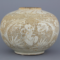 | Beautiful quality. Condition: There is an anomaly to one of the corners, as seen in the pictures below. It seems that a problem was fixed before baking. There is no post-baking restoration present. H: 57 cm |