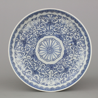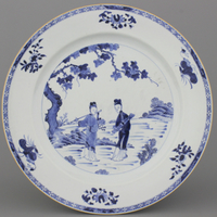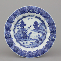 Blauw en wit bord in Chinees porselein met bloemendecor, 18e eeuw