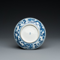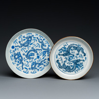 - The large saucer with a few typical superficial chips and a hairline of ca. 2 cm under the mount.