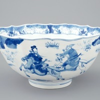 - The bowl with typical surfuce crazing on the inside and outside. With a rim chip on the inside of one of the tips with a related rough area of ca. 3 cm. As well as a small rim chip on the outer rim of ca. 3 x 2 mm.