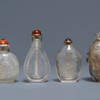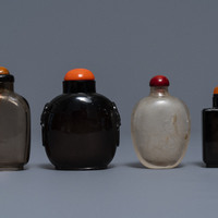 Vier Chinese snuifflessen in rookkwarts en bergkristal, 18/19e eeuw