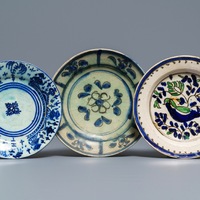 Drie bordjes in Islamitisch aardewerk, Syrië en Iran, 19e eeuw