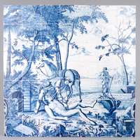 Een blauw-wit tegeltableau met een fijne bloemenvaas, Makkum, Friesland, 18/19e eeuw