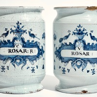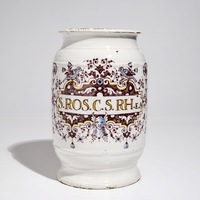 Een grote polychrome albarello in Brussels aardewerk, 18e eeuw