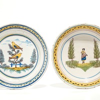 Een polychrome Brussels aardewerken dekselterrine met rupsen en vlinders, 18/19e eeuw