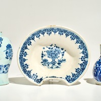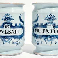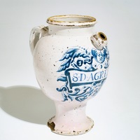 Een blauwwitte siroopkan in Delftse stijl, Rijsel, Frankrijk, 17/18e eeuw