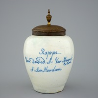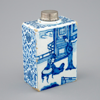 Condition: Some restoration, most apparent on the upper half and towards the top rim. Old varnish has yellowed. From what we can see, the restoration likely covers areas of glaze loss and hairlines, we don't think it covers a break.