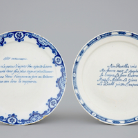 Twee blauw-witte Delftse tekstborden voor de Franse markt, 18e eeuw