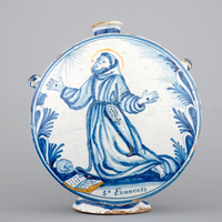 Een pelgrimsfles met decor van Sint-Franciscus, Nevers, 18e eeuw