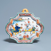 Een rechthoekige blauw-witte Delftse plaquette met Jezus en de Samaritaanse vrouw, gedateerd 1767