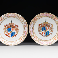 A pair of Chinese famille rose octagonal armorial plates, Qianlong
